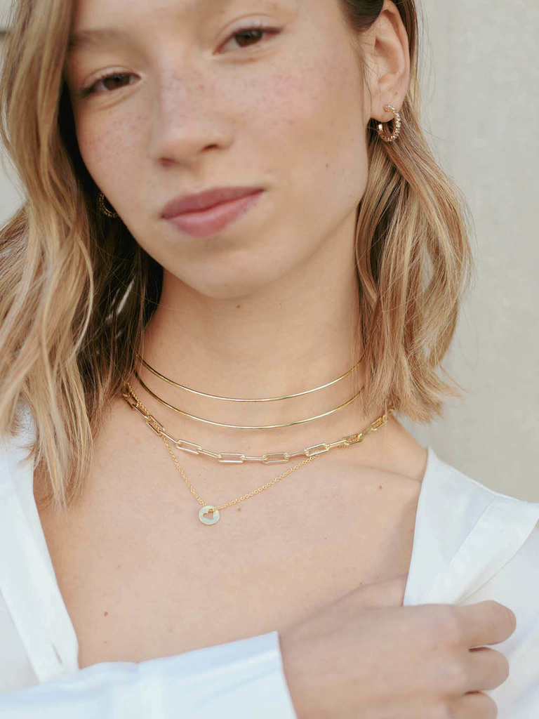 Cadena de cobre + dije de bronce cortado y pulido + baño en oro 24k.